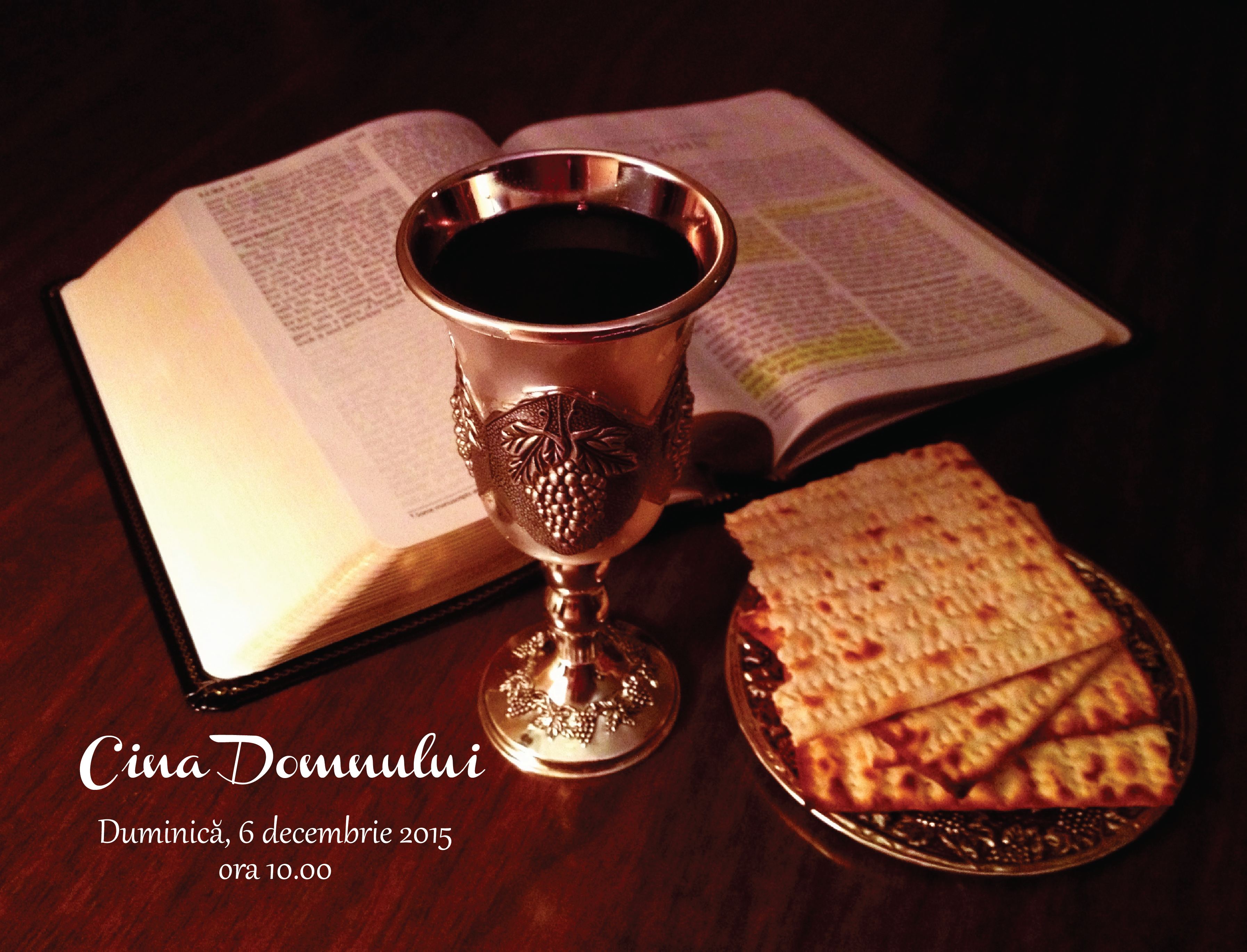 În data de 6 Decembrie 2015, în cadrul serviciului de dimineață, vom sărbători Cina Domnului. Împreună cu noi va fi fratele pastor Iosif Moisiuc, pastor al Bisericii Baptiste "Buna Vestire" din Iași.